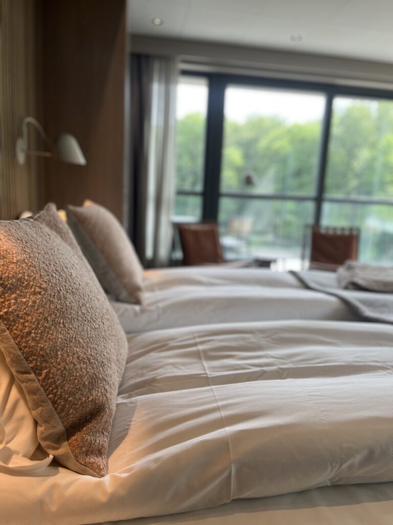 Efter en stund i spaet, där du kan njuta av varma pooler, bastu och avkopplande miljöer, väntar ditt rum – en privat oas att koppla av i. Vakna upp till ljudet av naturen och njut av en stund på din egen balkong med utsikt över Riverside spa och Nissan.